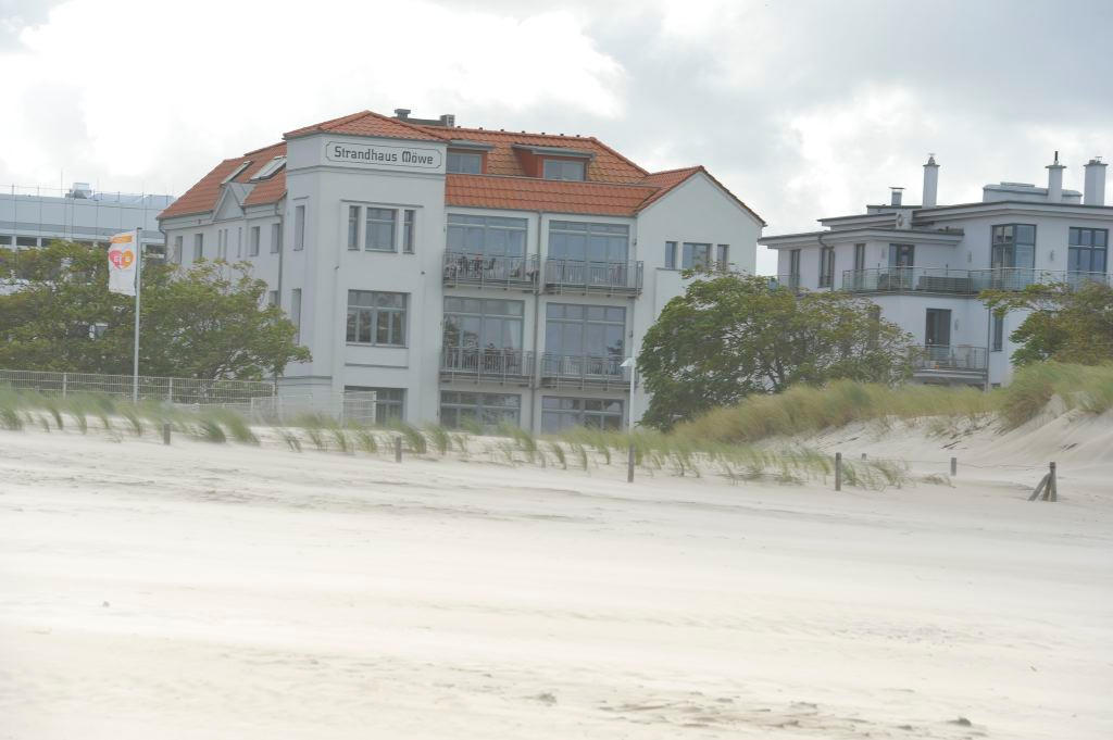 berühmten breiten Sandstrand von Warnemünde ab. Hinter dem Haus breitet sich der Kurpark aus.
